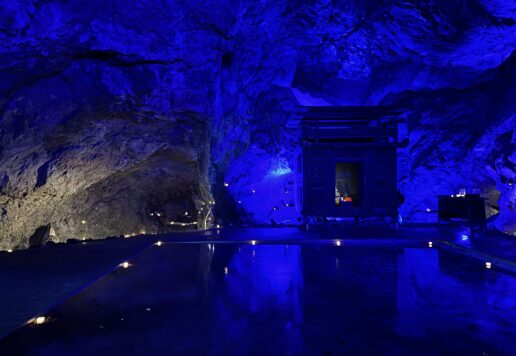 昔は舟でしか辿り着けなかった温泉で、朝日と月光を望む洞窟風呂。
