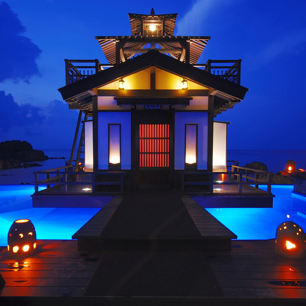 宿泊者専用エリア・特別保護エリアを含む聖域の岬全域を PM6:30〜AM8:30の間で貸切にてご利用いただけます。 朝陽、夕陽、青の洞窟、特別ナイトライトアップなどが自由に お楽しみいただけるご予定です。