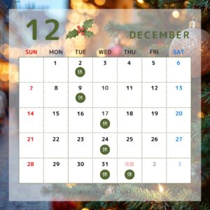 [ 12月の営業日のお知らせ ]